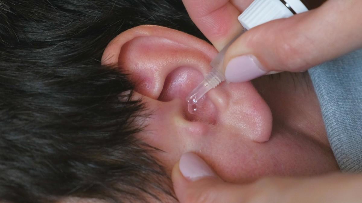 - Teteskan 2-3 tetes larutan ke dalam telinga.