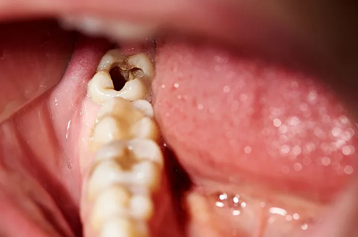 Lubang pada gigi terjadi karena proses karies, yaitu kerusakan email gigi akibat asam dari sisa makanan dan bakteri. Jika tidak ditangani, lubang akan semakin dalam.